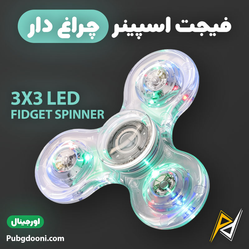 فیجت اسپینر 3×3، یک فیجت اسپینر با ظاهری خاص و جذاب است که ظاهر بسیار زیبایی دارد. این اسپینر دارای ۳ بازو است و روی هر کدام یک دکمه قرار دارد. این دکمه به شما اجازه می دهد تا نور هر بخش را به سه حالت تنظیم و یا خاموش کنید. مزیت اصلی این اسپینر آن است که ظاهر و نورپردازی آن تکراری نمی شود و می توانید با خلاقیت خودتان و با نوع نوری که تنظیم می کنید، هر بار ظاهر و نورپردازی این اسپینر را تغییر دهید. هر بازوی این اسپینر دارای یک دکمه است. این دکمه به شما اجازه می دهد تا نور پردازی را به سه حالت تنظیم کنید یا نور را خاموش کنید. زمانی که ۱ تا ۳ چراغ این اسپینر را روشن کنید، زمان چرخاندن آن، حلقه های نور رنگی و چشم نواز ایجاد می شود.