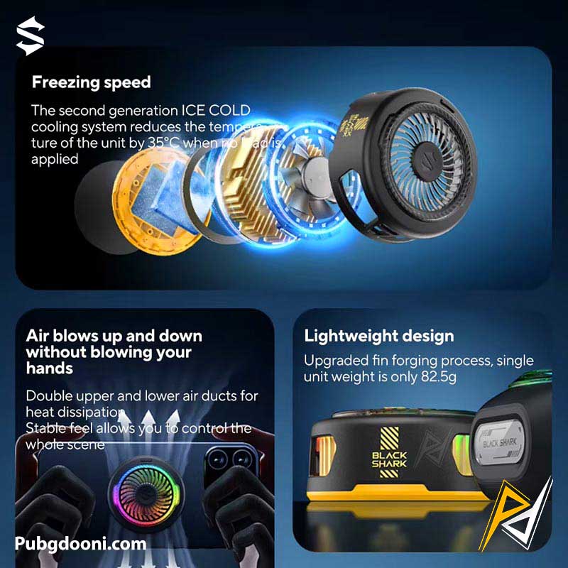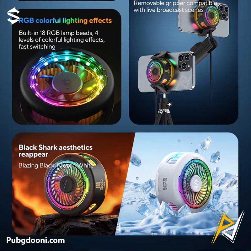 خنک کننده موبایل بلک شارک BlackShark Funcooler 5 BR50 اورجینال، مناسب برای پابجی، کالاف دیوتی، وارزون موبایل، فورتنایت و فری فایر PUBG, Call of duty , Fortnite, Warzone Mobile