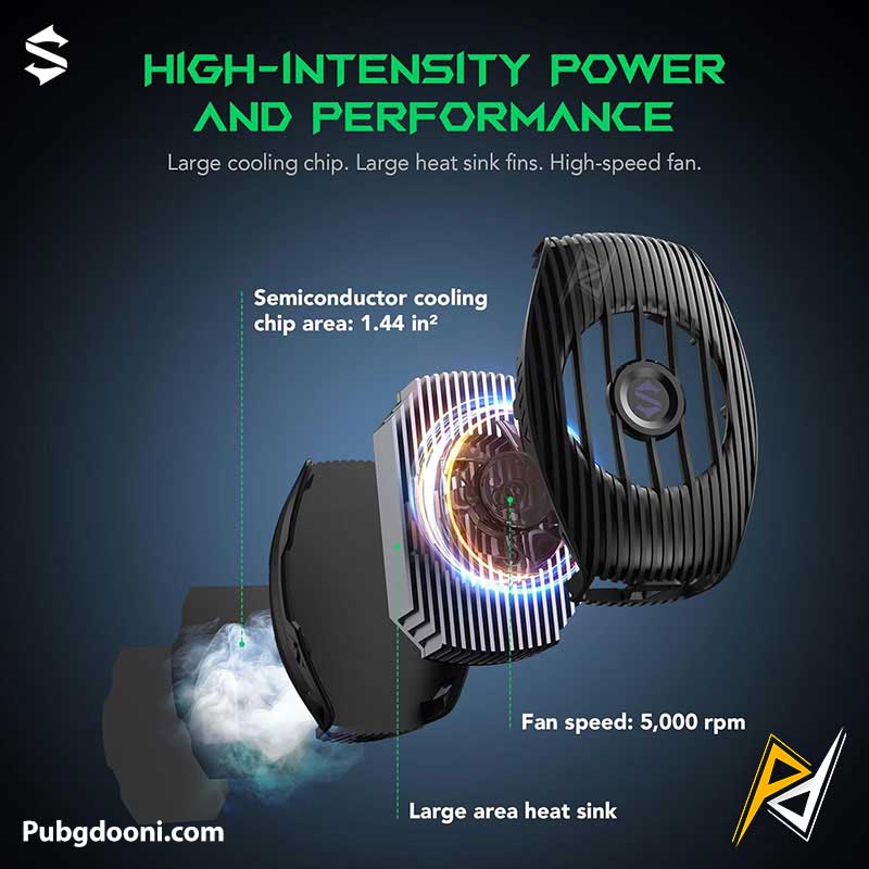 زمانی که به طور طولانی مدت پابجی موبایل PUBG Mobile، کالاف موبایل Call of Duty Mobile، فری فایر Freefire و … بازی می کنید، باتری و سخت افزار موبایل داغ می کند و دمایشان بالا می رود. اگر این افزایش دما را کنترل نکنید، آسیب های جبران ناپذیری به موبایل و باتری آن وارد می شود. فن رادیاتور خنک کننده بلک شارک Blackshark مدل Funcooler 5 Neo BR43، سلامت موبایل و باتری را حفظ می کند و جلوی لگ های سخت افزاری و افت فریم را می گیرد.