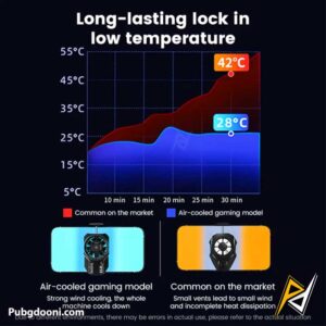 زمانی که طولانی مدت و در فضای بسته بازی میکنید باتری موبایل شما گرم میشود. اگر این گرما و داغ شدن موبایل را کنترل نکنید، به سخت افزار موبایل شما آسیب های جبران ناپذیری وارد شده و سلامت باتری گوشی موبایل شما پس از مدت کوتاهی به شدت افت خواهد کرد. خنک کنندگی این فن خنک کننده موبایل حرفه ای بر پایه توربو فن است که مانع از داغ شدن گوشی موبایل شما در هنگام بازی کردن با موبایل به خصوص بازی های بتل رویال سنگین PUBG ، Call Of Duty ، Apex Legends و وارزون موبایل Warzone Mobile میشود.