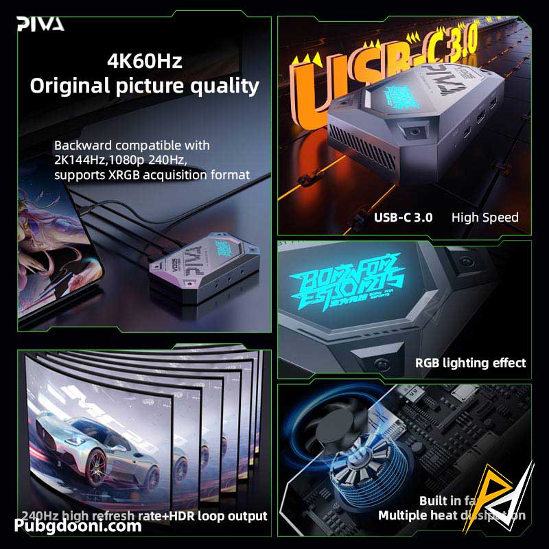 کارت کپچر Piva VD05 به چراغ RGB مجهز شده است. ویژگی حائز اهمیت دیگر این محصول، پشتیبانی آن از HDR 10 است. این قابلیت، تصاویر را زنده تر، زیباتر و دقیق تر می سازد.