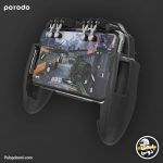 دسته بازی موبایل فن دار پابجی PUBG پرودو Porodo P3 Pro دارای ۴ عدد پدال می باشد. شما می توانید با تنظیم جای Aim و Shoot، شلیک و نشانه گیری را با این دسته کنترل کنید و علاوه بر این دو فرمان، ۲ فرمان دیگر(مانند پرش و…) را هم با این دسته کنترل کنید. این یعنی کنترل هم زمان ۶ فرمان بازی با ۶ انگشت. این گیمپد چهار پداله در مدت زمان خیلی کوتاه، سرعت کنترل شما در بازی را چندین برابر می کند و شما را به سطح دلخواه در بازی می رساند.