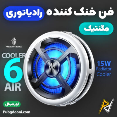 یکی دیگر از جدید ترین خنک کننده های گوشی موبایل کمپانی ردمجیک، خنک کننده ردمجیک Redmagic Cooler 6 Air است. فن خنک کننده RedMagic Cooler 6 Air ، یک کولر گیمینگ پیشرفته است که به طور خاص برای بازی های سنگینی مثل وارزون موبایل Warzone Mobile، پابجی موبایل PUBG Mobile، کالاف دیوتی موبایل Call of Duty Mobile، فری فایر Garena Free Fire و … طراحی و ساخته شده است. این خنک کننده مگنتی حرفه ای برند معتبر ردمجیک، توان پایدار 15 واتی دارد. با استفاده از این فن خنک کننده حرفه ای، دمای گوشی موبایل شما به شدت کاهش پیدا می کند و می توانید بدون لگ های سخت افزاری و افت فریم و به راحتی بازی کنید. با کمک این فن خنک کننده گیمینگ گوشی موبایل، بازی روی دیوایس شما به صورت روان اجرا می شود.