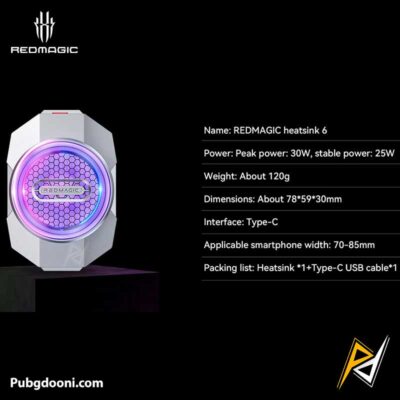 خنک کننده ردمجیک RedMagic Cooler 6، یک خنک کننده پیشرفته و قدرتمند مخصوص گوشی موبایل است. این خنک کننده برای گیمر هایی طراحی شده که به دنبال اجرای روان بازی ها و راحت شدن از شر لگ های سخت افزاری و افت فریم هستند. فن خنک کننده RedMagic Cooler 6 ، یک کولر گیمینگ پیشرفته است که می توانید از آن حین بازی های سنگینی مانند وارزون موبایل Warzone Mobile، پابجی موبایل PUBG Mobile، کالاف دیوتی موبایل Call of Duty Mobile، فری فایر Garena Free Fire و … استفاده کنید. ردمجیک کولر ۶ نه تنها کیفیت ساخت بالا و طراحی شیک و مدرنی دارد، عملکرد فنی فوق العاده و قدرت خنک کنندگی بالایی نیز دارد. طبق گفته ی کمپانی سازنده، حداکثر توان این خنک کننده به 25 الی 30 وات می رسد.