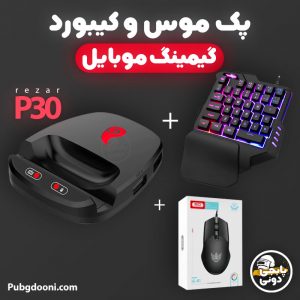 موس و کیبورد گیمینگ موبایل ارزان به همراه مبدل رزار rezar P30 مناسب برای پابجی، کالاف دیوتی و فورتنایت PUBG, Call of duty , Fortnite